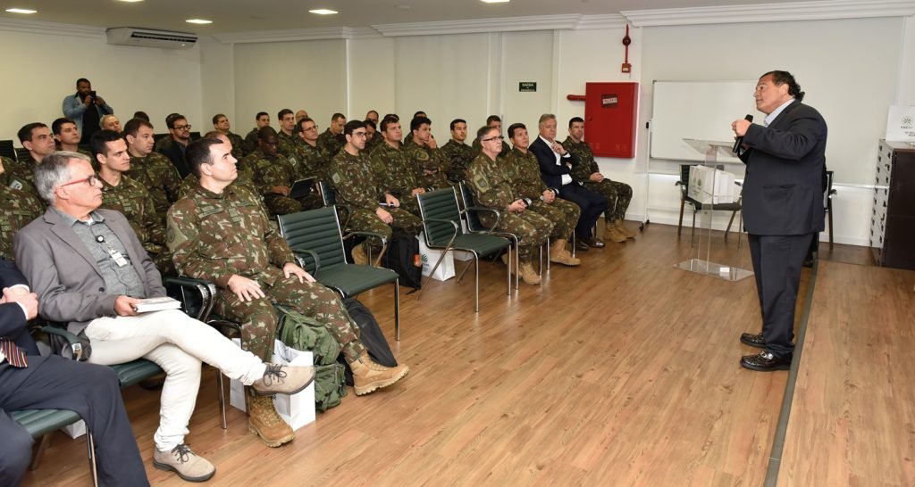 O coronel Demeterco apresentou aos oficiais da ECEME um dos investimentos mais avançados no qual o Sistema Faesp/Senar está trabalhando: a construção dos Centros de Excelência e Técnicos do Senar no interior do estado.